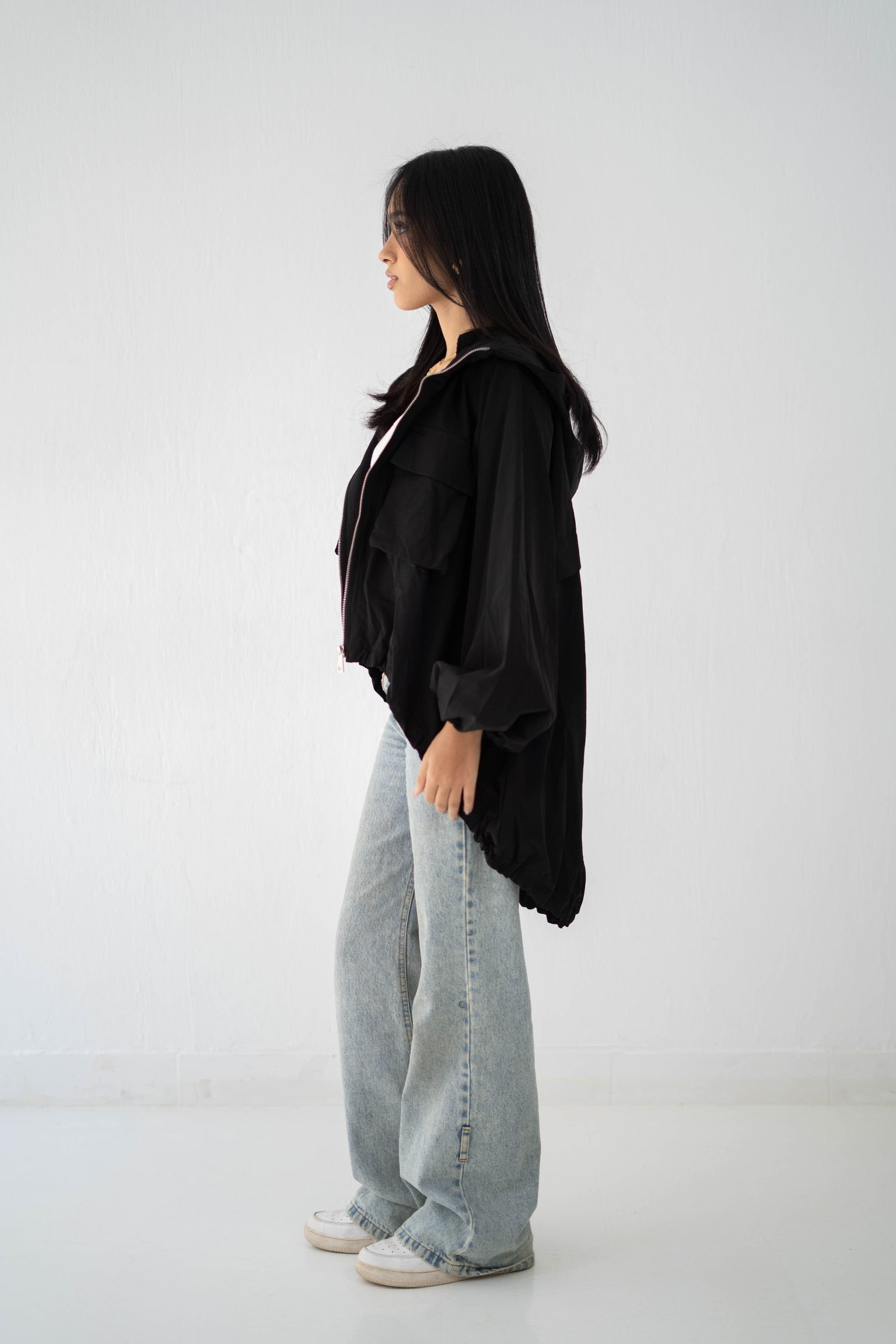 Effortlessly cool and versatile — this oversized utility zip jacket features bold flap pockets, elastic cuffs, and a high-low hem for a modern twist. Lightweight, comfy, and perfect for layering