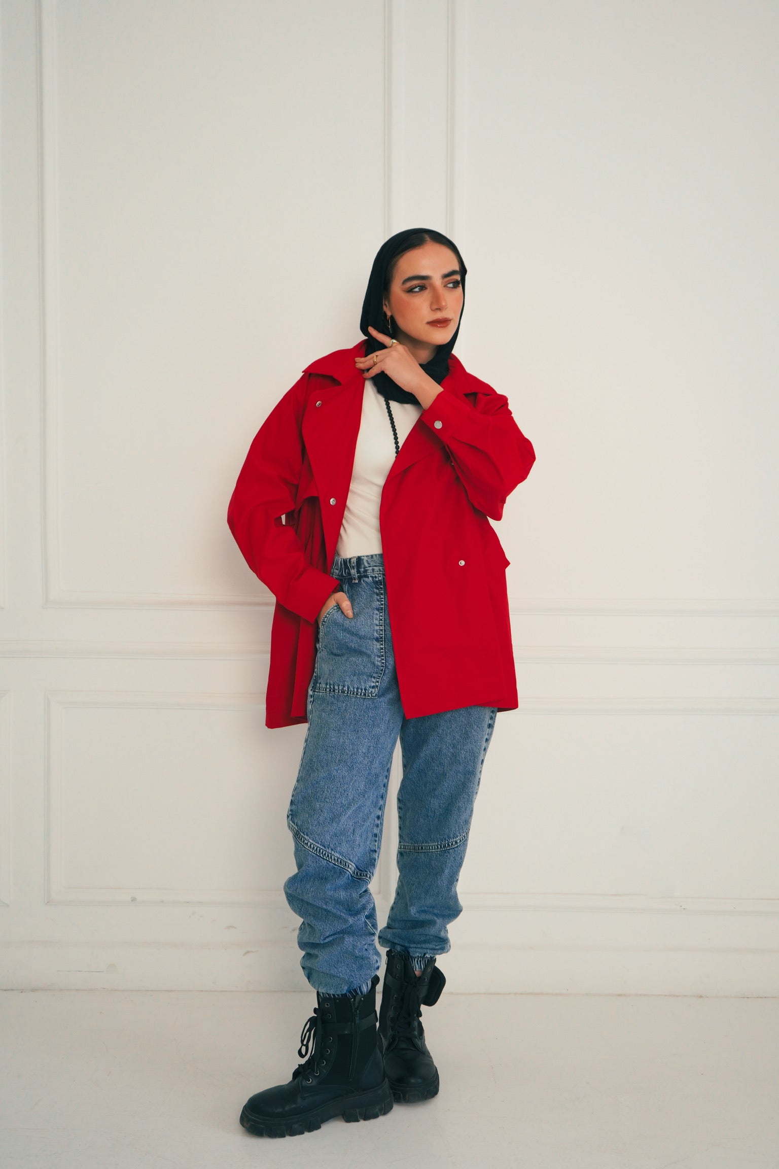 The lightweight fabric offers comfort without compromising on style, making it perfect for layering through transitional seasons.